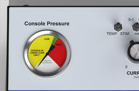 Console and cylinder pressure gauges indicate gas pressure and enable real-time monitoring.