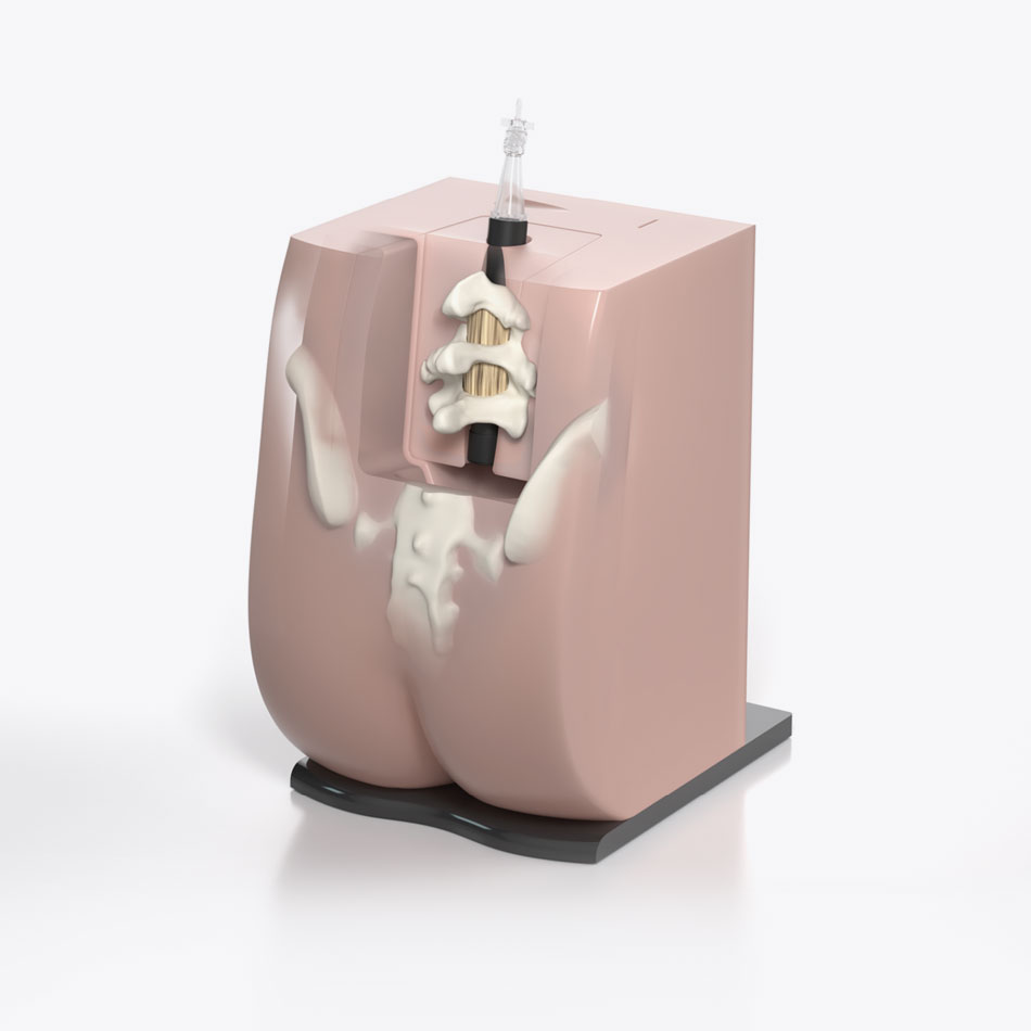 The GENESIS Epidural-Spinal Injection Simulator is the ideal training simulator for common neuraxial blocks. This training device contains anatomical structures found in the lower lumbar region. GENESIS gives the ability to demonstrate routine neuraxial procedures such as: epidural loss of resistance, single shot spinals, epidural and spinal catheter placement, and combined spinal epidural technique. The realistic loss of resistance and fluid filled intrathecal space allows users to locate the correct target sites.